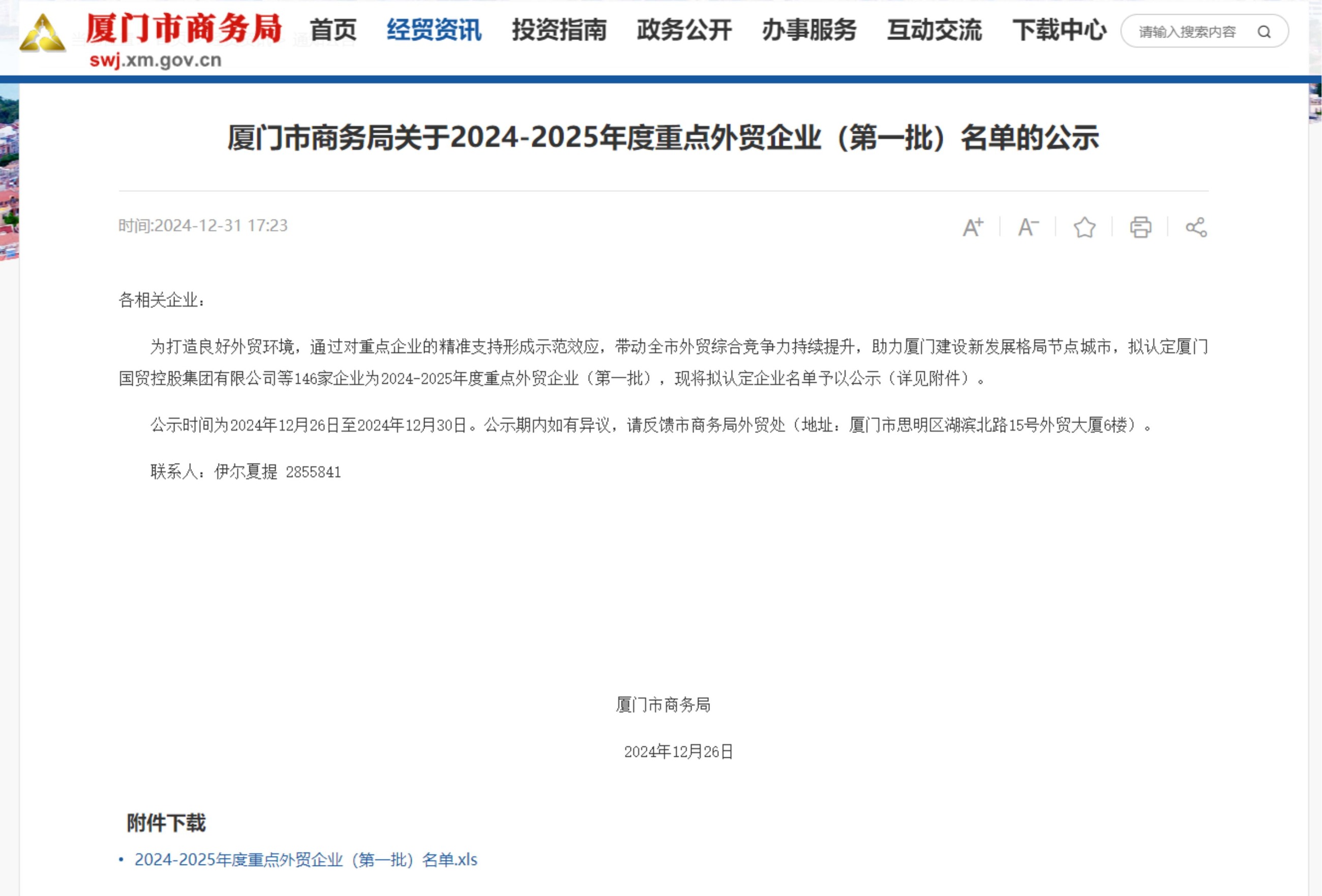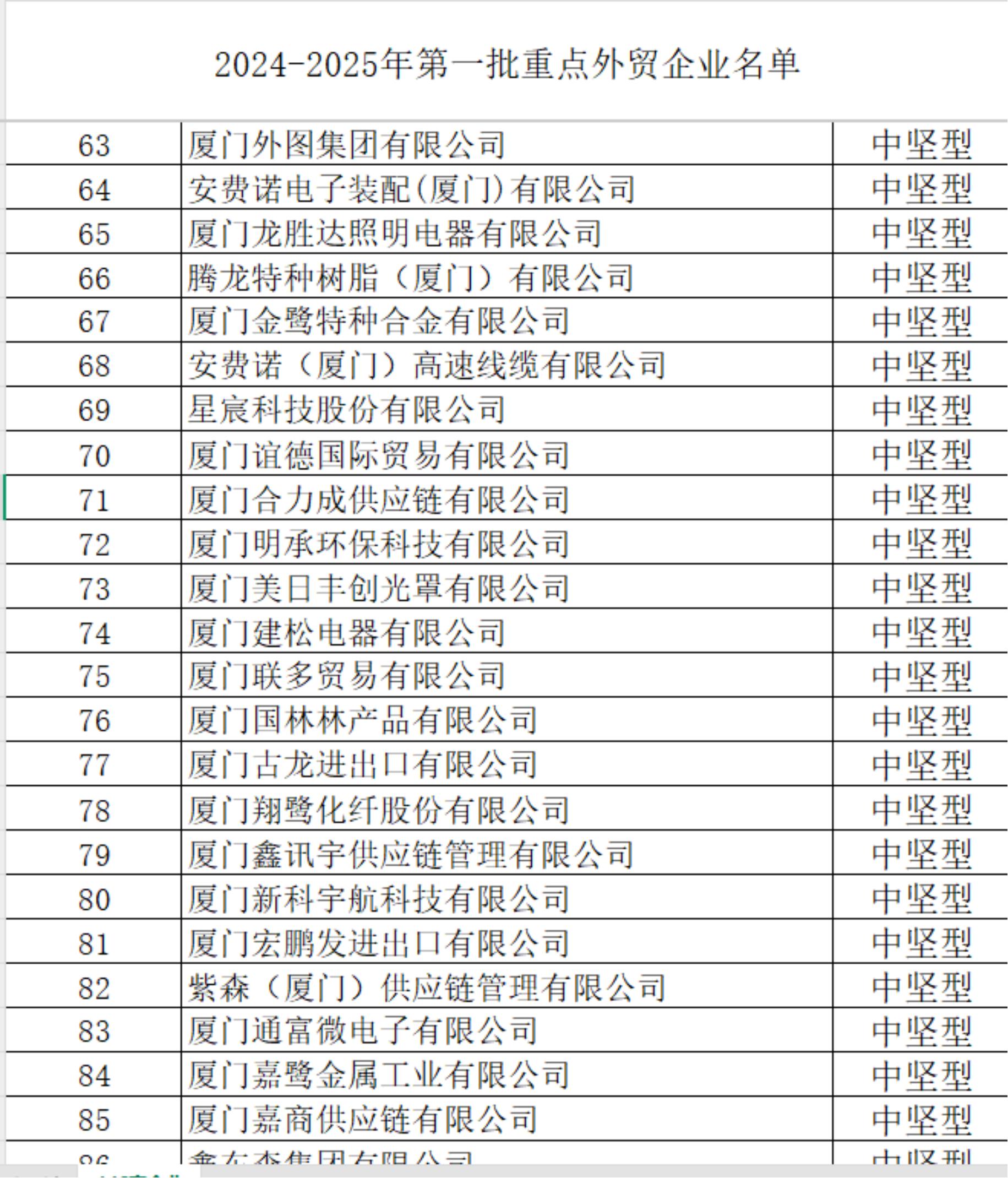 廈門(mén)市(shì)第一(yī)批重點外(wài)貿企業(yè)--2024-2025年(nián)度