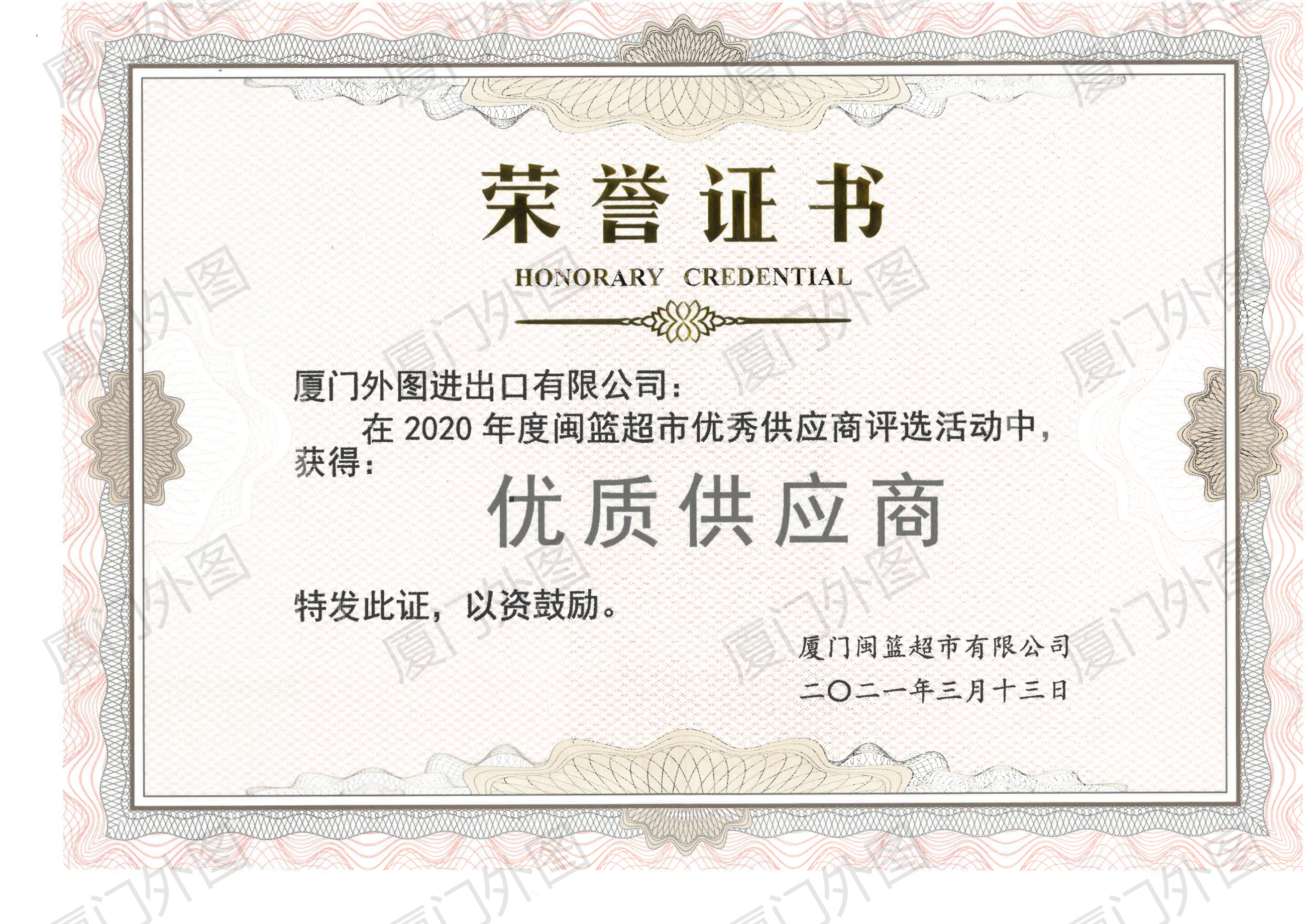 閩籃超市(shì)優質供應商-2020年(nián)度