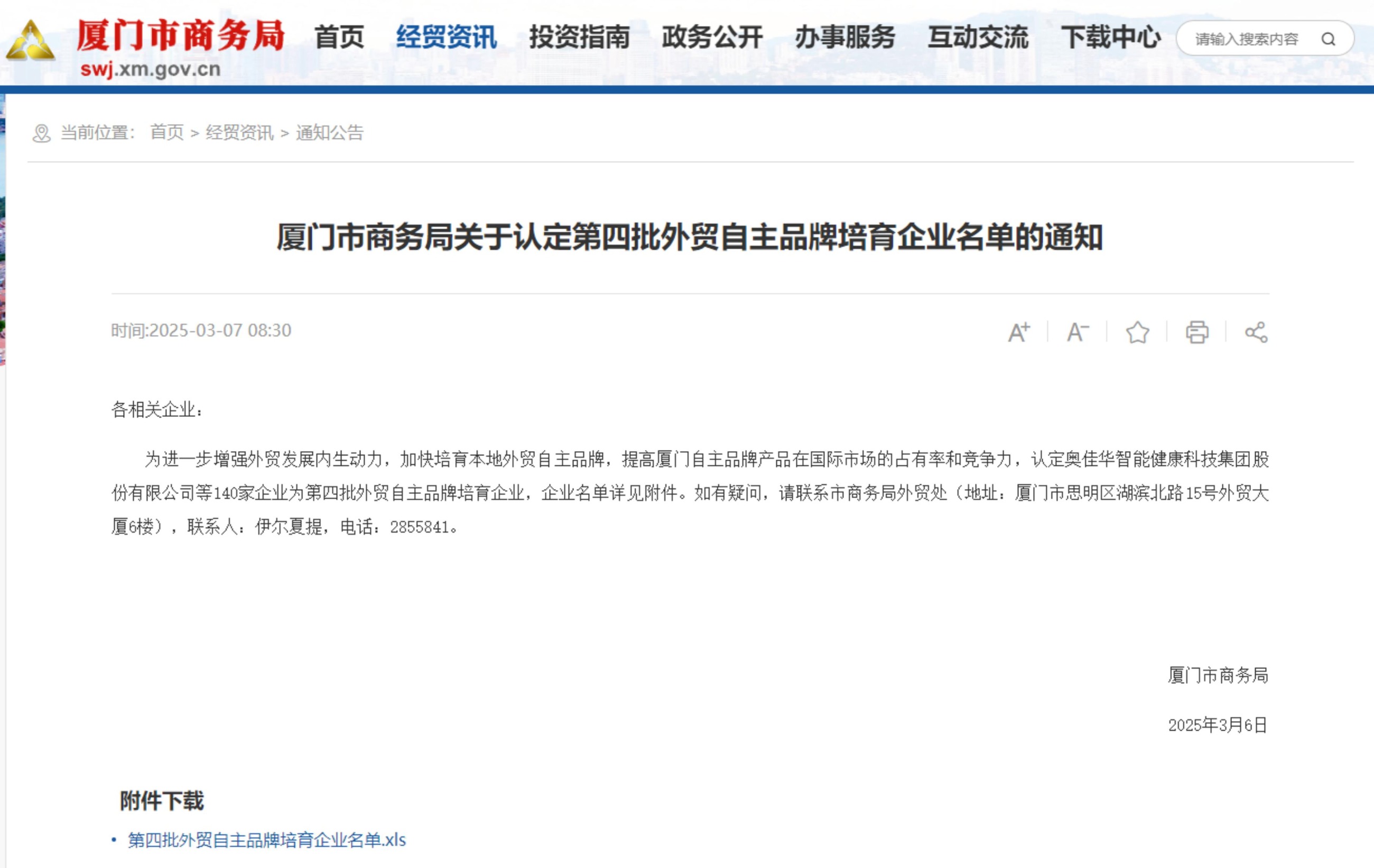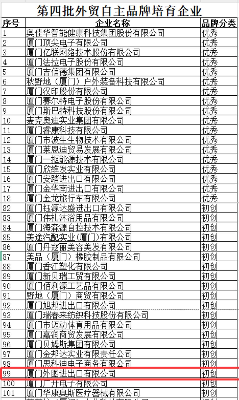 廈門(mén)市(shì)第四批外(wài)貿自(zì)主品牌培育企業(yè)